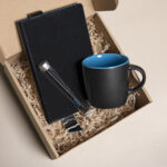 Набор подарочный DESKTOP: кружка, ежедневник, ручка, стружка, коробка, черный/голубой
