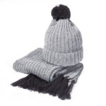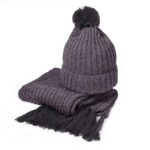 Вязаный комплект шарф и шапка «GoSnow», антрацит c фурнитурой, темно-серый, 70% акрил,30% шерсть