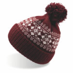 Шапка вязаная с снежинками и помпоном «FLAKE»_бордо, 100% акрил