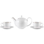 Чайник и две чайных пары GOLD в упаковке, 250мл и 1200мл, костяной фарфор