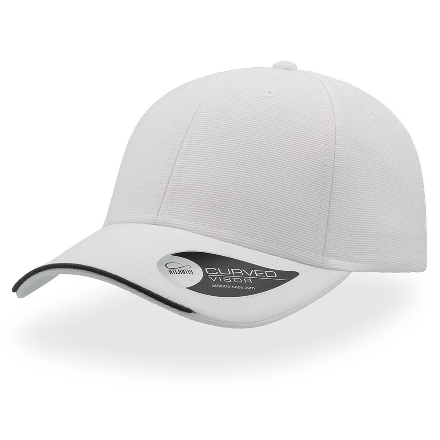 Плотная жаккардовая бейсболка ESTORIL с декоративным кантом по центру козырька. — 6 клиньев,- лобовой шов,- 6 вышивных люверсов для лучшей вентиляции,- изогнутый козырек с полной прострочкой,- контрастный кант в центральной части козырька.- застежка на липучке.Цвет близкий к Pantone White58 см — минимальный размер, с помощью застёжки его можно увеличить до необходимого.