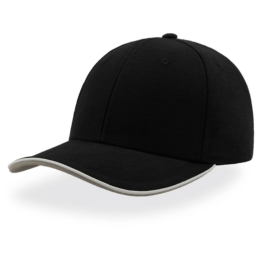 Плотная бейсболка PILOT PIPING SANDWICH с двухцветным козырьком, отделанным контрастным кантон. — 6 клиньев,- лобовой шов,- 6 вышивных люверсов для лучшей вентиляции,- изогнутый козырек,- металлическая застежка, — нижняя сторона козырька контрастного цвета.Цвет, близкий к Pantone Black 6C58 см — минимальный размер, с помощью застёжки его можно увеличить до необходимого.