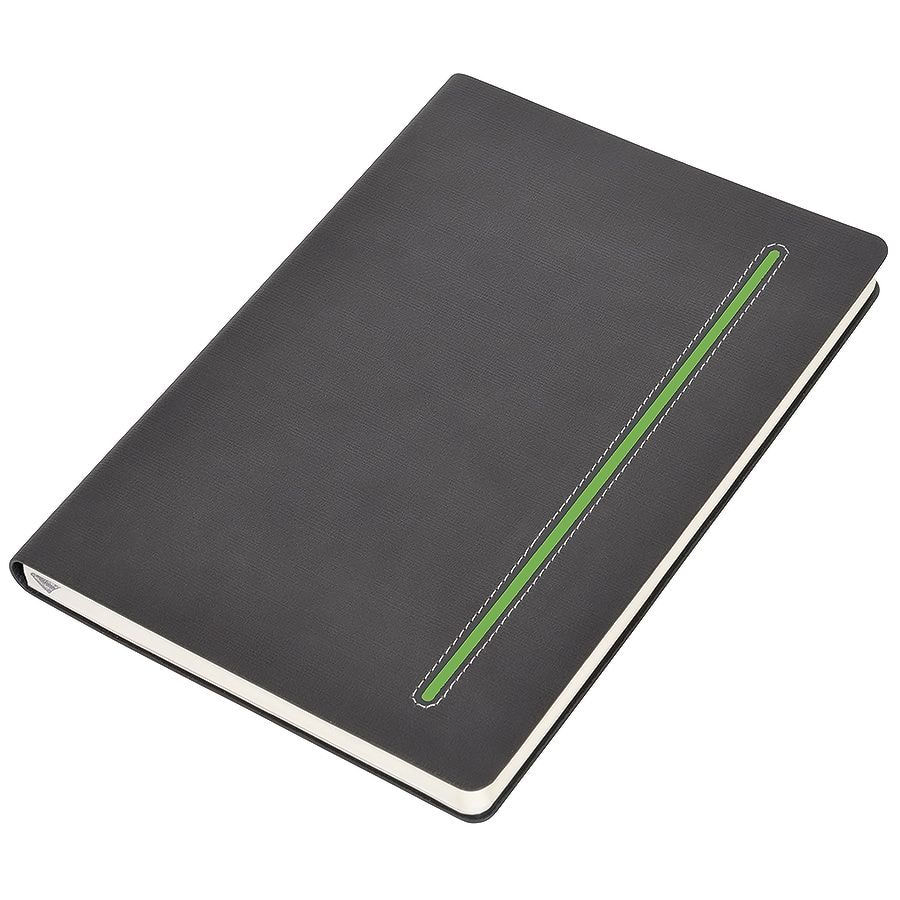 Elegance — блокнот благородного серого цвета с тонкой цветной вставкой, отличается сдержанным шиком и строгостью. Цвет обложки близкий к Pantone 447С, цветная вставка близкая к Pantone 376U. Итальянская торговая марка. FSC сертификат. Мягкая термоактивная обложка из PU Catena. Черный форзац и стикер для персональной информации. Кремовая бумага блока, 256 стр. В клетку. Перфорация 8 последних листов.