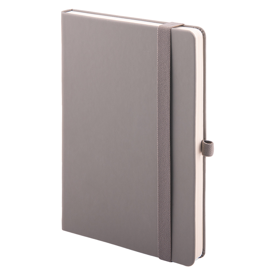 Самый популярный блокнот в твердой обложке, с эластичной резинкой, пенхолдером и ляссе в тон.Термоактивный классический PU материал Silk PlusЦвет обложки, близкий к Pantone 423CВнутренний блок 256 страниц в линейкуИдеально скругленные углы блокаПерфорированные 8 последних листовКремовая FSC бумага 70г м2Карман для мелочейИндивидуальная упаковка: прозрачный сливбокс