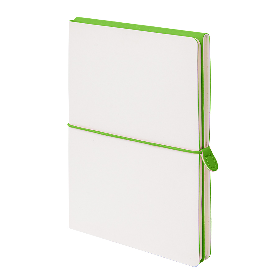 с оборотной стороны — яркий PU Silk Plus (цвет, близкий к pantone 355C). — два разных внутренних блока по 96 страниц соединены под одной обложкой: