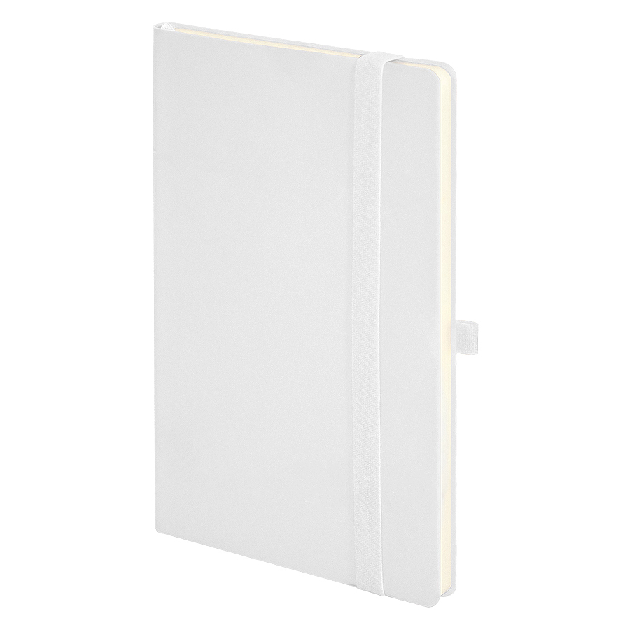 Soft-touch блокнот с покрытием, защищающим от царапин FSC сертификат Мягкая термоактивная обложка PU нового поколения Silk Plus Пантон, близкий к White Кремовая бумага (блок 70 гр, форзац 160 гр) Блок 192 стр. в линейку Перфорация 8 последних листов. Ляссе в тон обложке. Практичные закругленные углы. Надежный прошитый переплет. Упаковка: фирменный слив-бокс