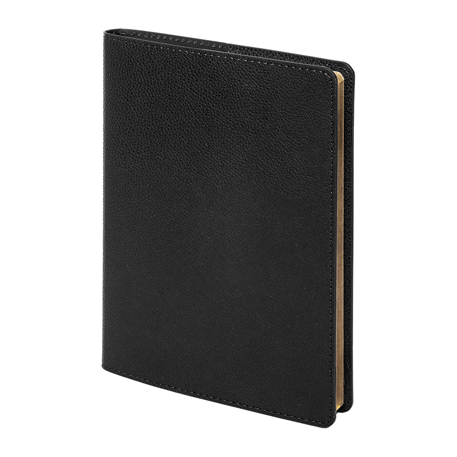 Цвет обложки, близкий к пантону Black CРазмер 150*210 ммПереплет гибкий, прошивка по периметруБлок недатированный портфолио, в линейкуСкругленные углы, одноцветная печатьБумага кремовая, плотность 70г м2272 страницыЗолотистый обрезКаптал и ляссе в цвет обложкиУпаковка крафтовый сливбоксВ данный момент происходит смена справочной части блока. Внешний вид изделия остается без изменений.