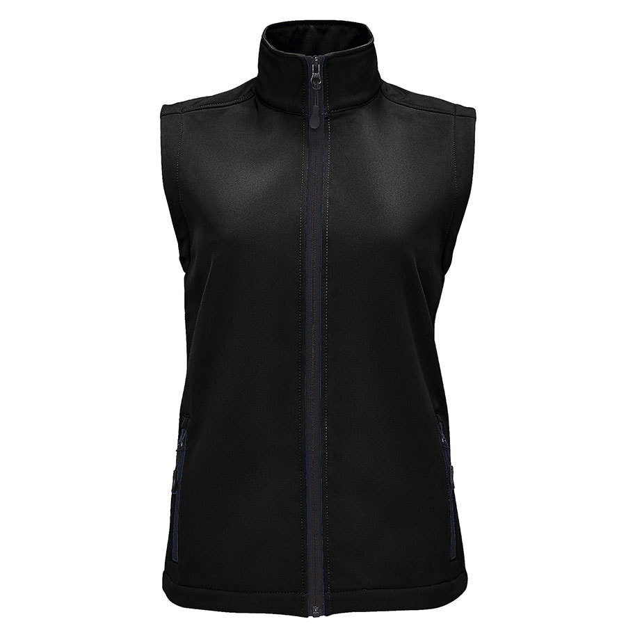 Женский жилет из материала софтшелл с водоотталкивающими свойствами (вода скатывается c поверхности ткани). Флис с внутренней стороны изделия сохраняет тепло. Два кармана на молнии с подкладкой «сетка» для большей вентилируемости.