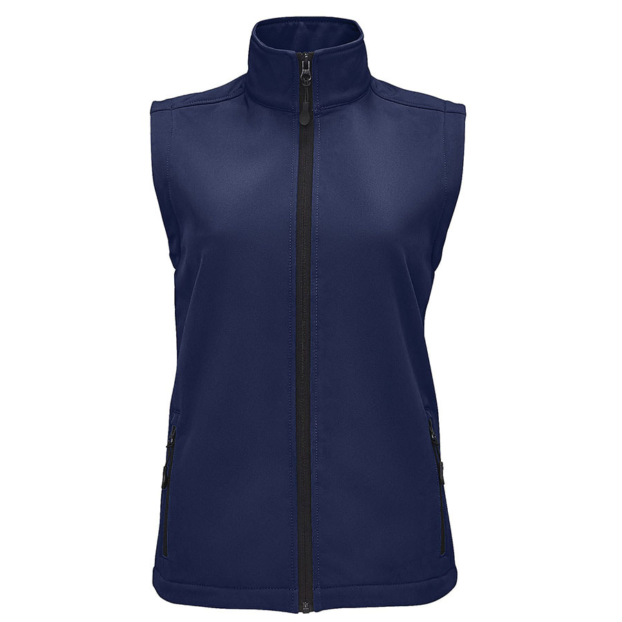 Женский жилет из материала софтшелл с водоотталкивающими свойствами (вода скатывается c поверхности ткани). Флис с внутренней стороны изделия сохраняет тепло. Два кармана на молнии с подкладкой «сетка» для большей вентилируемости.