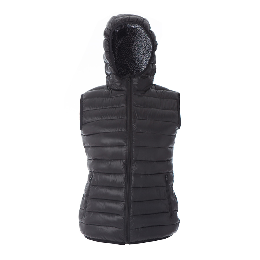 Легкий женский жилет с капюшоном. Облегченная пластиковая молния со съемным пуллером в тон изделия. Два передних кармана на молнии. Один внутренний карман на липучке. Cтягивающая эластичная резинка по низу изделия, в рукавах и капюшоне. Контрастная подкладка леопард. Представленные размеры могут отличаться от общепринятых. Рекомендуем взять образец для проверки посадки изделия на фигуре.