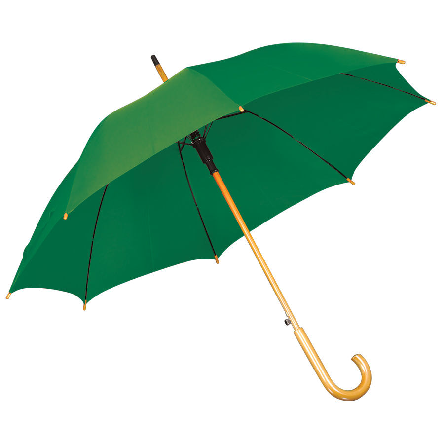 Зонт-трость с деревянной ручкой, полуавтомат. Диаметр купола: 103 см, длина стержня 90 см. Состав купола: 100% полиэстер 190T Состав спиц: металл. Ручка деревянная. Цвет купола: близкий к пантону 343C.