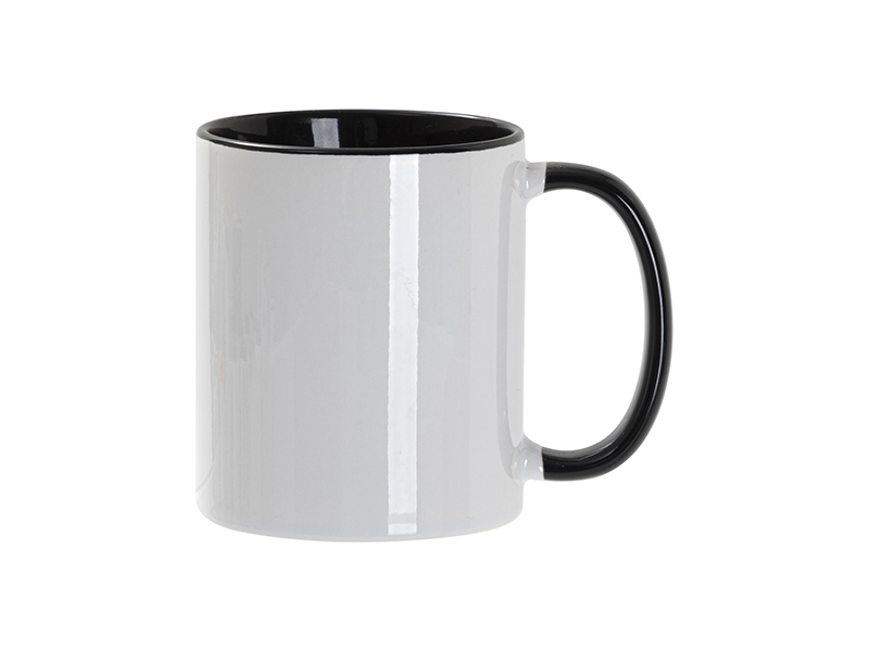 Кружка для сублимации, 330 мл, d=82 мм, стандарт А, белая, черная внутри, черная ручка