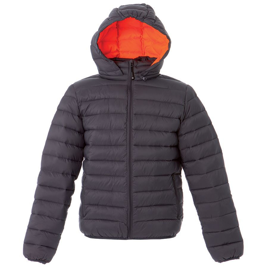 Основная ткань: цвет, близкий к Pantone 2379 С, подкладка: цвет, близкий к Pantone Orange 021 C Мужская куртка изготовлена из нейлона 300Т, обеспечивающим защиту от влаги и ветра. Капюшон отстегивается. Эластичная резинка по низу изделия и на рукавах. Боковые карманы на молнии, а также внутренний карман для бумажника.