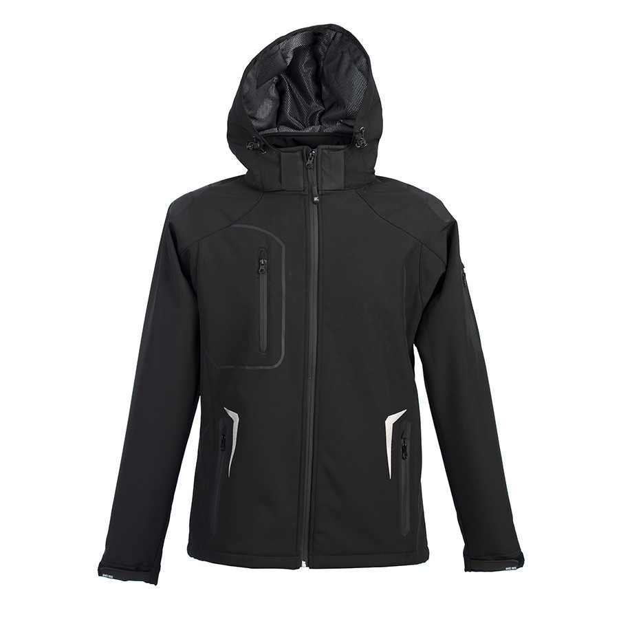 Основная ткань: цвет, близкий к Pantone Process Black C, подкладка: цвет, близкий к Pantone Black C · Трехслойный водонепроницаемый и ветрозащитный softshell: Нижний слой поглощает излишнюю влагу тела Средний слой (непродуваемая ветром мембрана с высокой паропроницаемостью) сохраняет тепло и передает испарения внешнему слою Внешний слой отдает влагу наружному воздуху, одновременно защищая тело от дождя и ветра · Показатели мембраны: