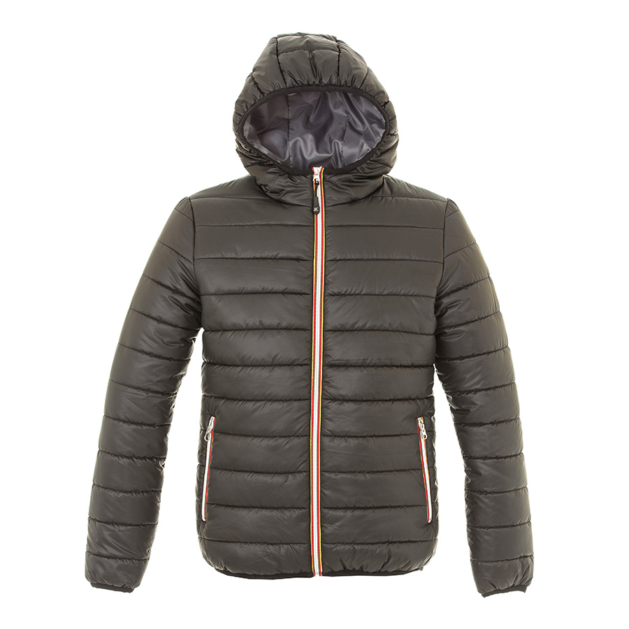 Основная ткань: цвет, близкий к Pantone 433 C, подкладка: цвет, близкий к Pantone 424 C Мягкая и легкая куртка из нейлона. Контрастная облегченная пластиковая молния со съемным пуллером. Два кармана на молнии. Внутренний карман на липучке. Манжеты рукавов, капюшон и низ куртки обрамлены эластичной резинкой.