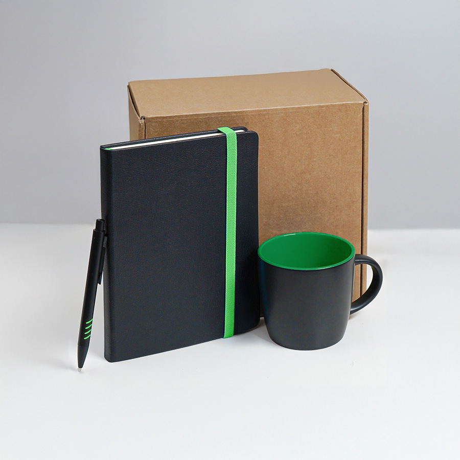 Набор подарочный HYPER: кружка, ежедневник, ручка; черный/зеленый