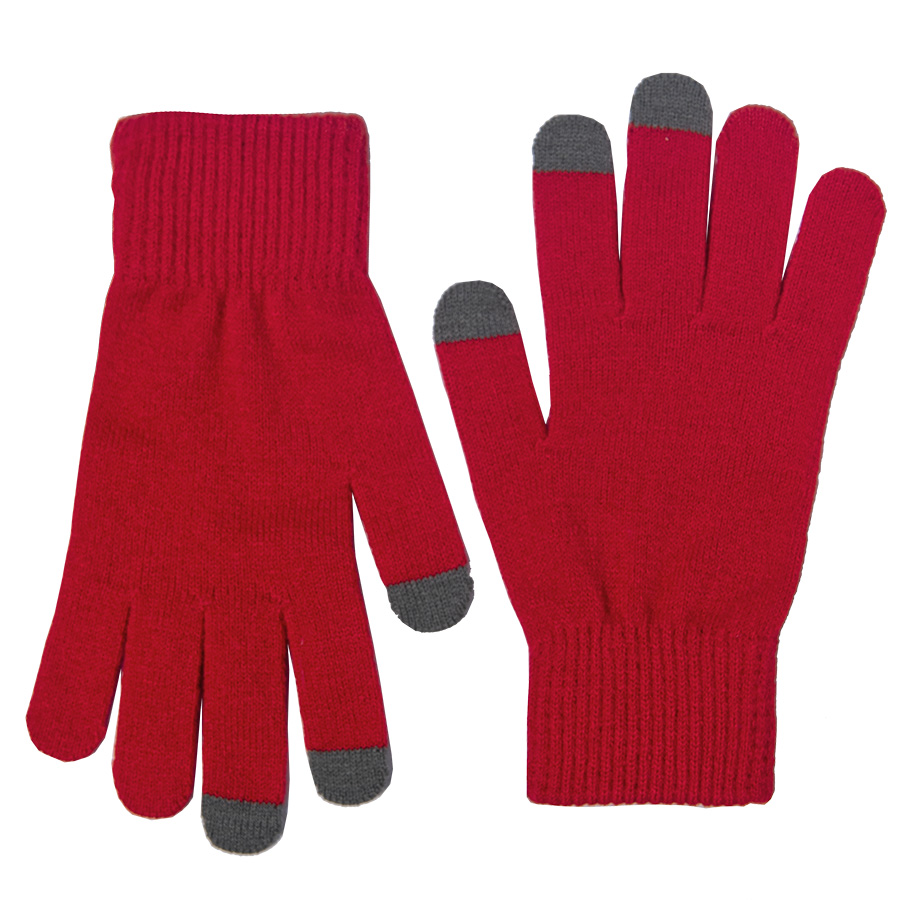Перчатки из теплого и мягкого акрила с сенсорными наконечниками.Основной цвет: красный. Цвет сенсорных вставок: серый меланж.