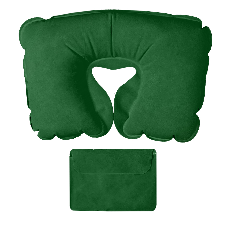 Подушка надувная дорожная в футляре, зеленыйЦвет близкий к PANTONE 348C