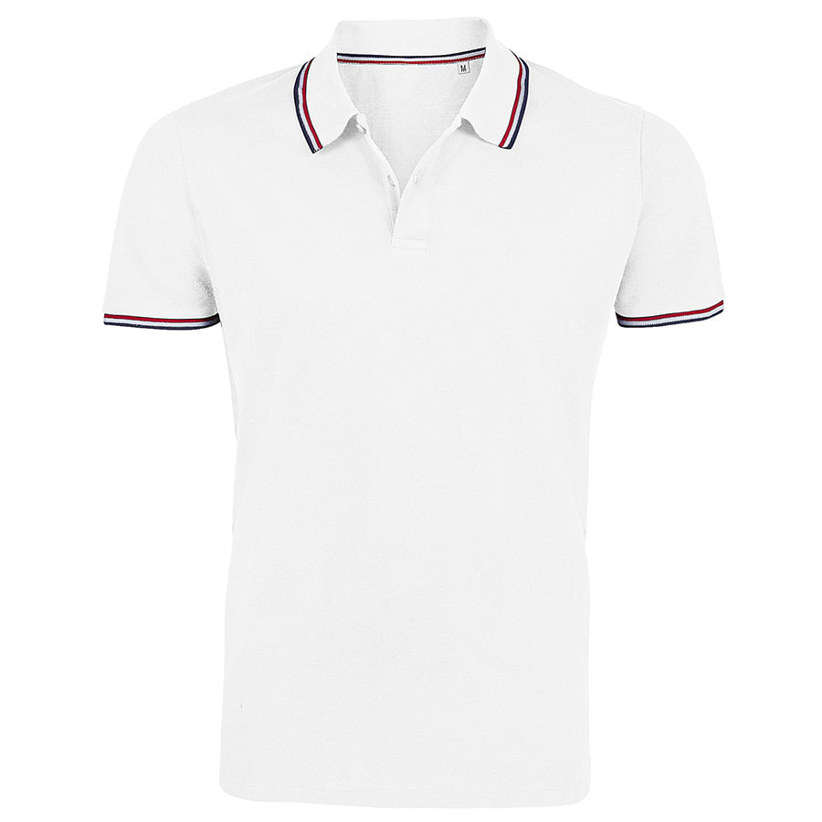Мужская футболка поло с боковыми швами. Воротник и манжеты вывязаны резинкой 1*1 Контрастные полоски на воротнике, по низу рукавов, внутри бокового разреза и на внутренней стороне воротника. Планка поло на двух пуговицах. Лейбл с размером находится во шве горловины, лейбл производителя вшит в в боковом шве изнутри.