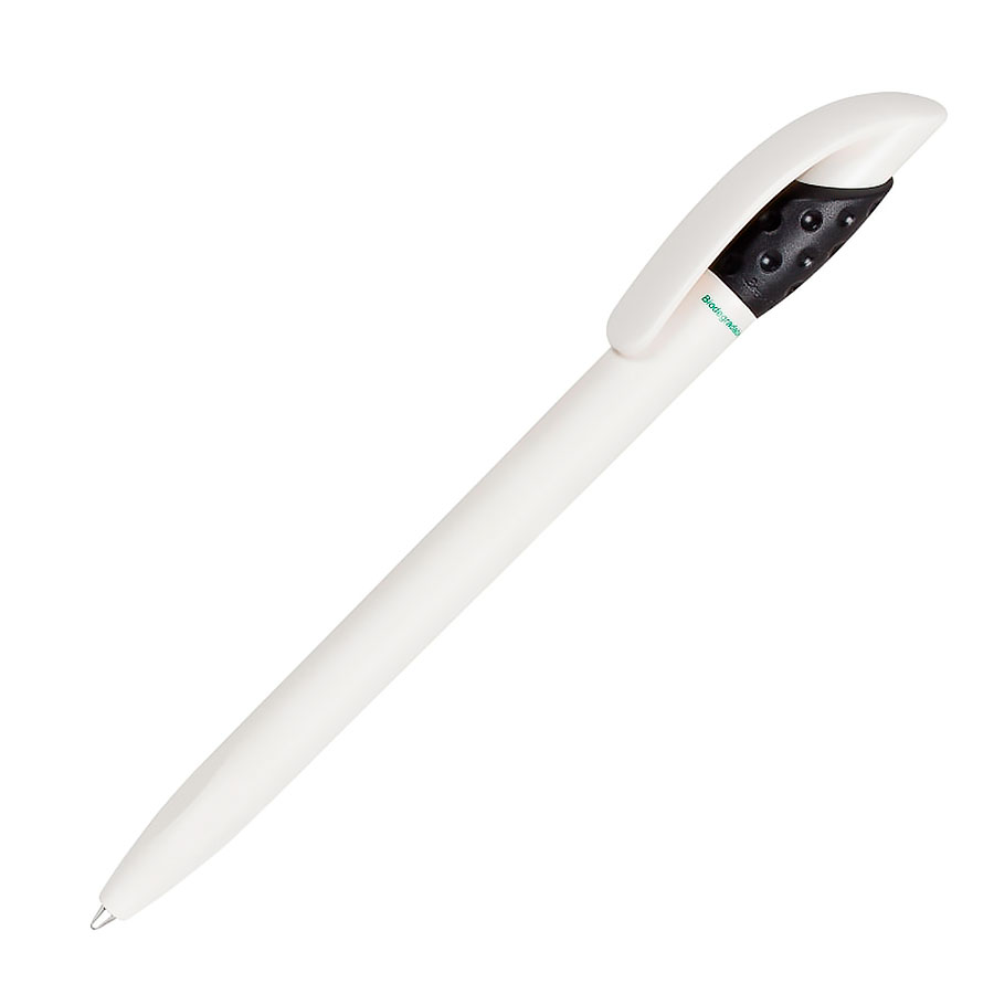 Корпус ручки изготовлен из пластика на основе кукурузного и картофельного крахмала. Такой пластик разлагается в земле всего за 6 месяцев. Pantone, близкий к Black C.