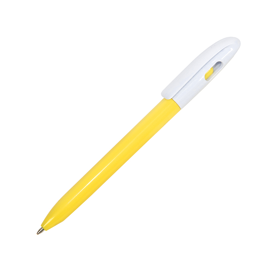 Ручка обтекаемой формы с поворотным механизмом и оригинальной деталью: когда стержень в нерабочем положении, цветная внутренняя кнопка полностью закрывает окошко в верхней части ручки, а когда стержень выдвинут — окошко наполовину открыто. Классическое сочетание глянцевого белого и цветного пластика создают отличный фон для логотипа или рекламного сообщения. • Цвет, близкий к Pantone 114C. • Корпус и клип из ABS пластика. • Поворотный механизм подачи стержня. • Пулевидный пишущий узел 1.0 мм. • Длина линии письма 600-800 м. • Цвет чернил синий. • Угол поворота корпуса 120°. • Сменный стержень X-20, длина 121 мм. Чтобы заменить стержень, нужно с небольшим усилием разъединить верхнюю и нижнюю части ручки, а после замены — соединить вместе до двух щелчков.