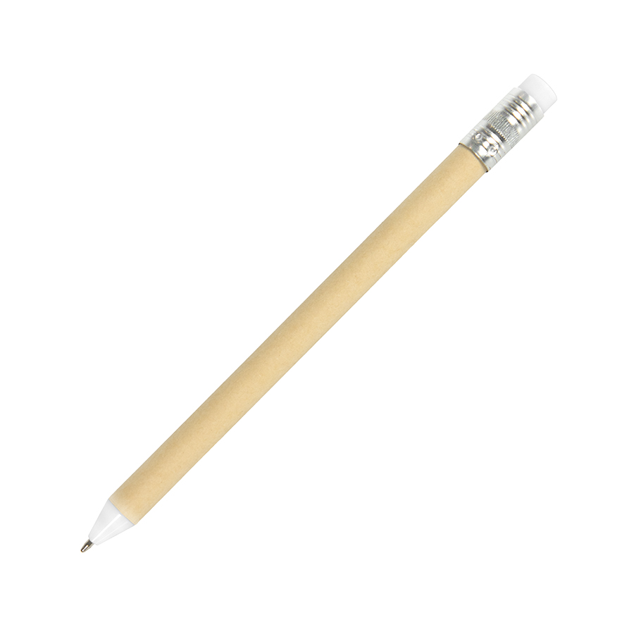 Забавная ручка в форме карандаша с корпусом из переработанного картона. Необычный сувенир и функциональный пишущий инструмент. • Цвет, близкий к Pantone White. • Корпус из переработанного картона. • Нажимной механизм подачи стержня. • Пулевидный пишущий узел 1.0 мм. • Длина линии письма 600-800 м. • Цвет чернил синий. • Cтержень Plastic Cross (без возможности замены). • Виды нанесения: тампопечать, лазерная гравировка. Обратите внимание, что печать на картоне менее устойчива к истиранию (по сравнению с пластиком).