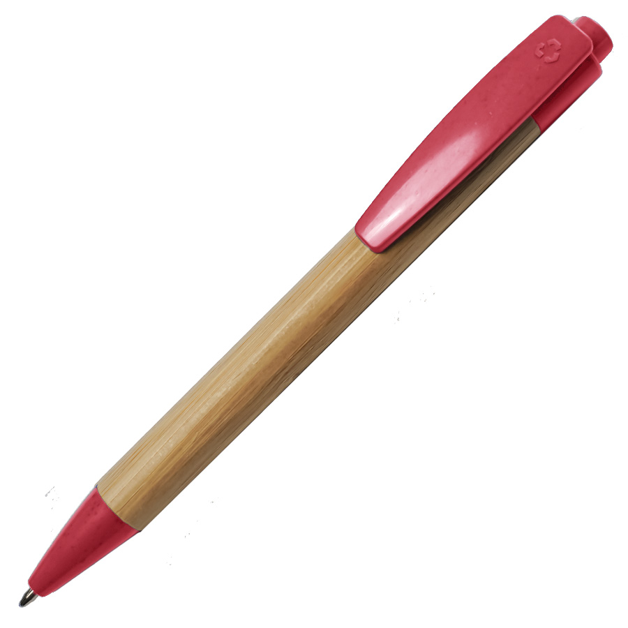 • Pantone деталей, близкий к 201 C• Размер 140*11 мм• Корпус из бамбука• Детали из переработанного пластика с добавлением пшеничного волокна• Значок переработки на оголовке ручки• Нажимной механизм подачи стержня• Пулевидный пишущий узел 1.0 мм• Длина линии письма 1000 м.• Цвет чернил синий• Сменный стержень