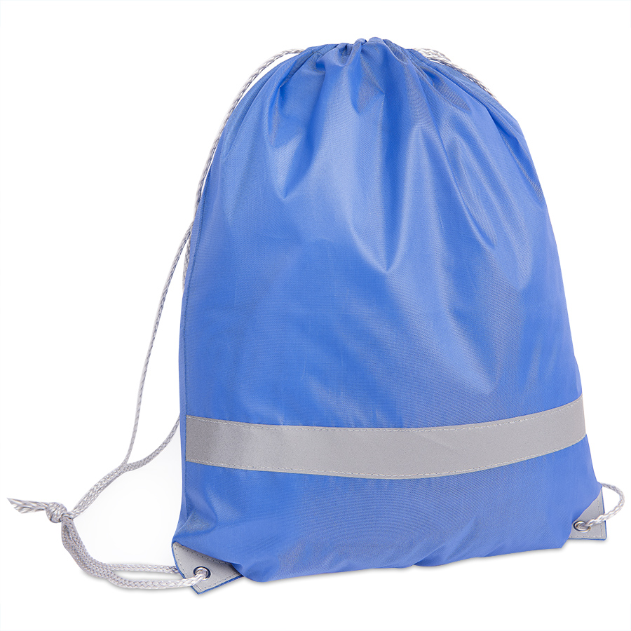 Рюкзак-мешок RAY из полиэстера 210Dсо светоотражающей полосой спереди, светоотражающими уголками,усиленными металлическими люверсамиЛегко и просто затягивается по верхней части серыми шнурами.