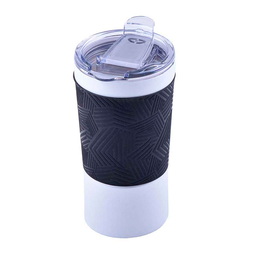Вакуумная термокружка с покрытием «ice flower» и силиконовой манжетой.Закручивающаяся крышка выполнена из высококачественного прозрачного пластика — тритан.Сохраняет температуру горячих напитков до 6 часов, холодных напитков — до 8 часов.Подходит для автомобильных подстаканников.