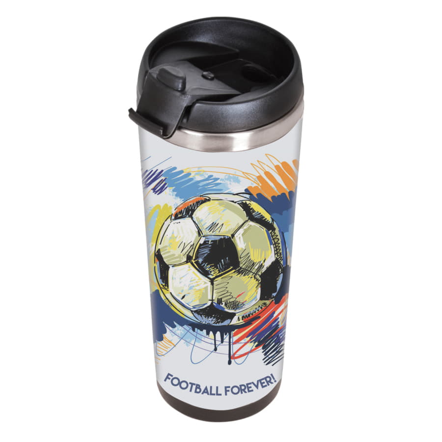 Термокружка с колбой из нержавеющей стали с огромным полем для печати, на котором можно разместить не просто логотип, а целый буклет. Полноцветная вставка занимает всю поверхность стакана и смотрится очень органично. Для сборки и разборки не требуются клей или специальные инструменты — изображение помещают в пространство между внешним и внутренним слоями корпуса. Хранит тепло 2-3 часа.
