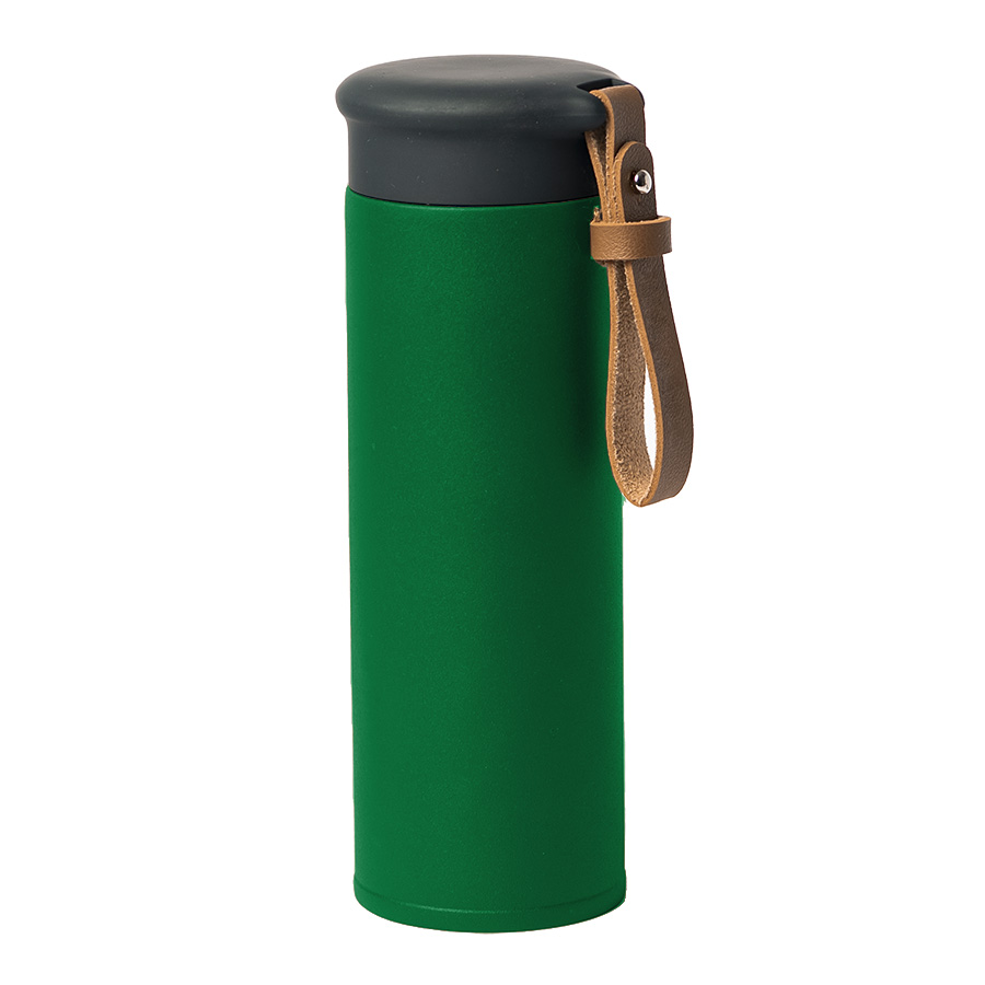 Вакуумный термос STRIPE с двойными стальными стенкамиСтильный матовый корпус термоса из нержавеющей стали (марка 304)Удобный ремешок из искусственной кожи, подходит для персонализацииГерметичная крышка с покрытием soft-touch не даст напитку пролиться