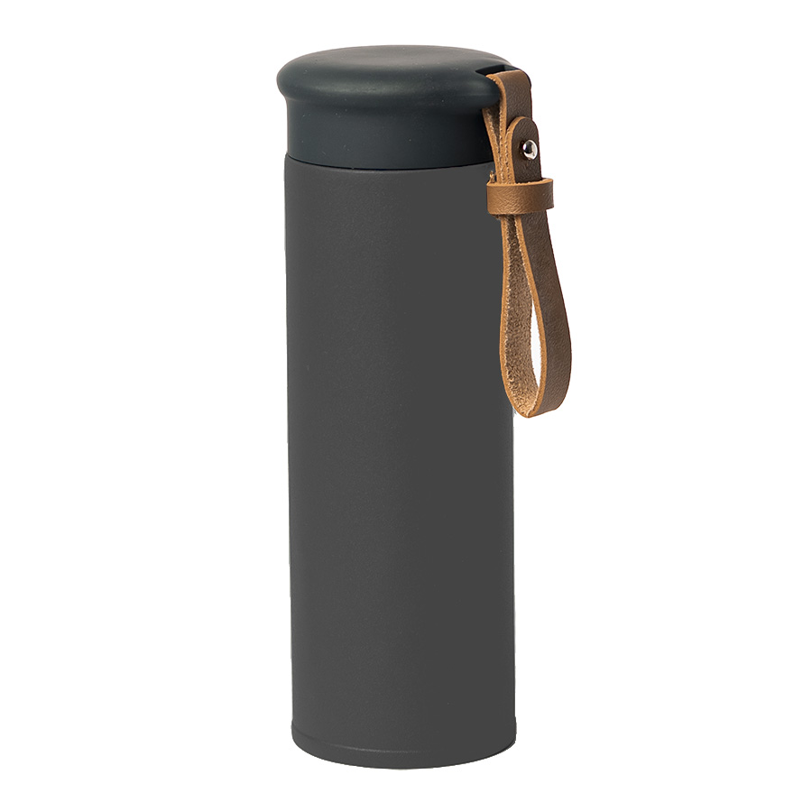 Вакуумный термос STRIPE с двойными стальными стенкамиСтильный матовый корпус термоса из нержавеющей стали (марка 304)Удобный ремешок из искусственной кожи, подходит для персонализацииГерметичная крышка с покрытием soft-touch не даст напитку пролиться