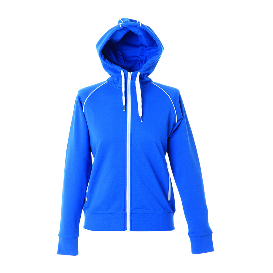 Основная ткань: цвет, близкий к Pantone 2935 U Толстовка из полотна «пике» с водоотталкивающей пропиткой. Обратные контрастные молнии для предотвращения попадания влаги внутрь. Рукава-реглан. Декоративная тесьма по горловине спинки. Капюшон на подкладке с небольшой стойкой. Контрастные канты и шнур в капюшоне. Два передних кармана на молнии. Манжеты и низ изделия обработаны плотным рибом 1*1 . Представленные размеры могут отличаться от общепринятых. Рекомендуем взять образец для проверки посадки изделия на фигуре