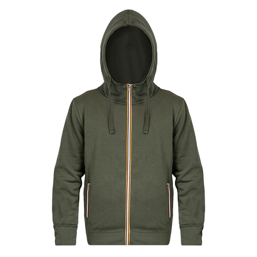 Комфортная толстовка худи на молнии LAS VEGAS MAN из футера с начёсом, плотностью 280 г м² и смесовым составом: 65% полиэстера и 35% хлопка. С таким составом изделия не деформируются и служат долго. Капюшон с подкладом и удобным высоким воротником-стойкой. Шов горловины усилен мягкой лентой Низ толстовки и рукава из эластичной рибаны. Основная молния и молнии в боковых карманах — контрастные. Материал: футер с начёсом, 65% полиэстера и 25% хлопка, 280 г м².