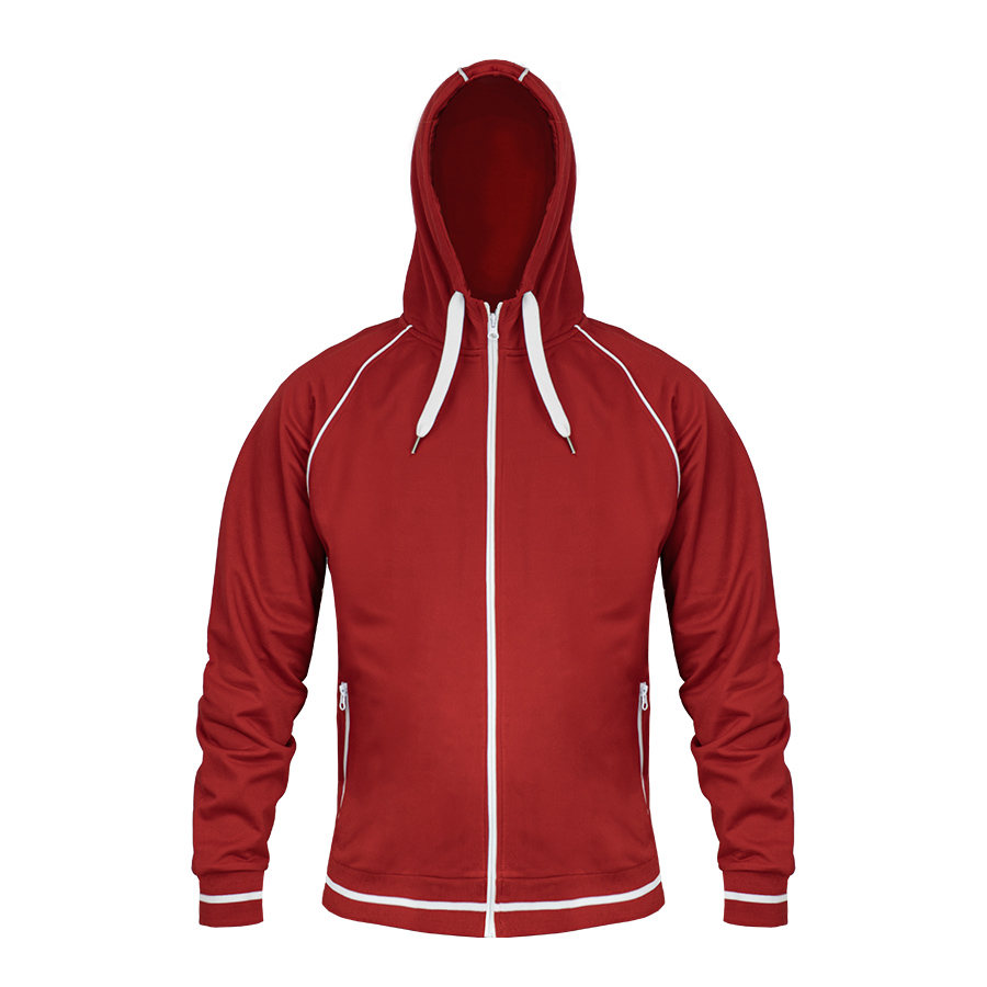 Основная ткань: цвет, близкий к Pantone 201 C Толстовка из полотна «пике» с водоотталкивающей пропиткой. Обратные контрастные молнии для предотвращения попадания влаги внутрь. Рукава-реглан. Декоративная тесьма по горловине спинки. Капюшон на подкладке с небольшой стойкой. Контрастные канты и шнур в капюшоне. Два передних кармана на молнии. Манжеты и низ изделия обработаны плотным рибом 1*1 .