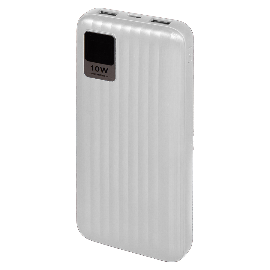 Внешний аккумулятор имеет пластиковый матовый корпус с ЖК-дисплеем, который покажет оставшийся уровень заряда в любой момент. Пауэрбанк заряжается через универсальный порт Type-C или Micro-USB и отдает энергию через два классических порта USB. Благодаря встроенному в корпус дисплею, следить за расходом батареи стало удобнее. Заряд показывается в процентах.Емкость батареи: 10 000 мАчТип батареи: литий-полимерМатериал корпуса: пластикВходные порты: Micro-USB, Type-CВыходные порты: USBВходное напряжение Ток: 5 В 2 AВыходное напряжение Ток: 5 В 2 AПровод для зарядки в комплектеИндикатор уровня заряда батареи на ЖК-дисплееВ комплект входит:1. Универсальный аккумулятор2. USB кабель с разъемом USB-A и Type-C для зарядки