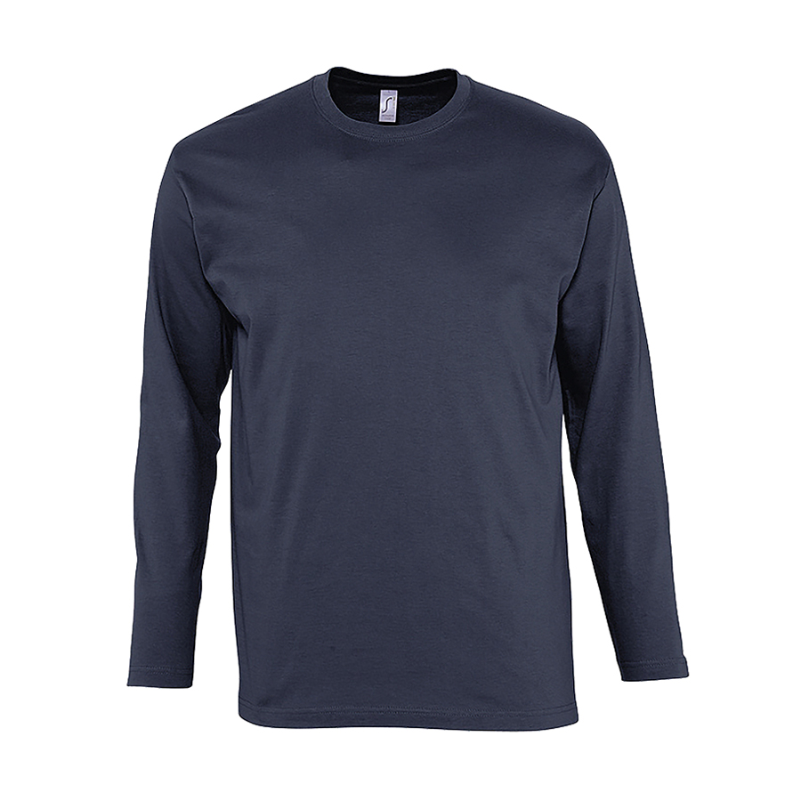 Мужская футболка с круглым классическим вырезом и длинными рукавами. Модель без боковых швов. Укрепляющая тесьма по вороту.