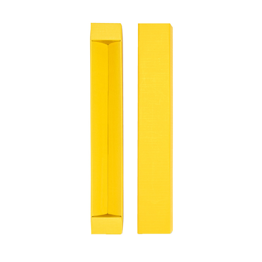 Футляр из дизайнерского картона с тиснением и ламинацией. Подходит для ручек и карандашей длиной до 145 мм и диаметром до 12 мм. Цвет, близкий к Pantone 123C.