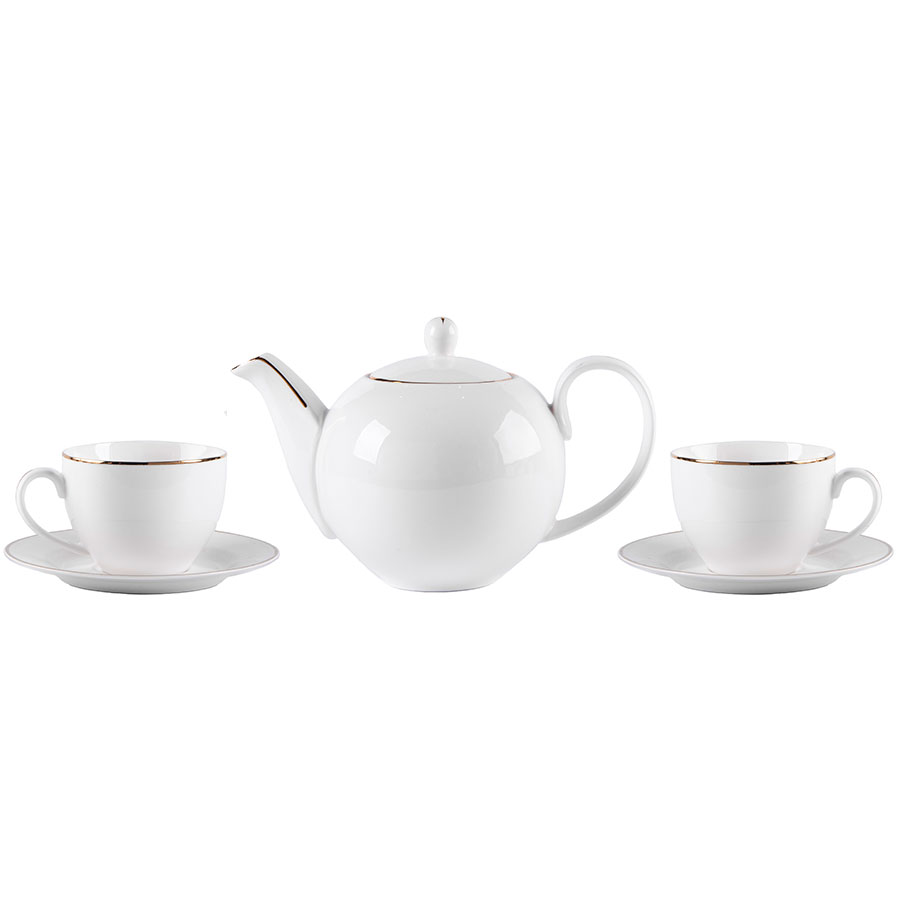Традиции художественного творчества от собственной торговой марки BRISTOL. Бережное наследие прошлого воплощено в чайном наборе GOLD. Набор выполнен из костяного фарфора, который создаст особый шарм чаепитию. Этот материал содержит в своем составе примеси обожженной костяной муки, которые придают ему необыкновенную белизну и легкость. Стенки такой посуды гораздо тоньше обычного фарфора, но при этом сохраняют такую же прочность. Отличительной чертой набора стал позолоченный кант по краю на каждой части набора. Чайник выполнен в классическом стиле с удобной ручкой. Объем в 1200 мл. рассчитан на уютное коллективное чаепитие. В комплекте две чайных пары, они представлены в виде чашек объемом 250 мл. и практичных блюдец с выемкой для фиксации чашек. Набор станет отличным подарком в духе императорского стола. Поставляется в подарочной коробке с ложементом.